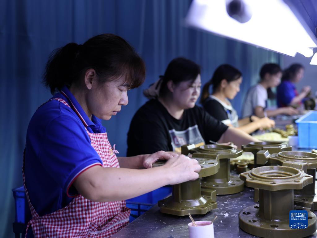 8月24日,工人在河北省邢臺市寧晉縣河北聯碩機械制造有限公司蠟模車間工作。