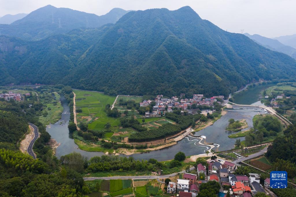 8月25日,空中俯瞰湖源鄉石龍村壺源溪流域(無人機照片)。