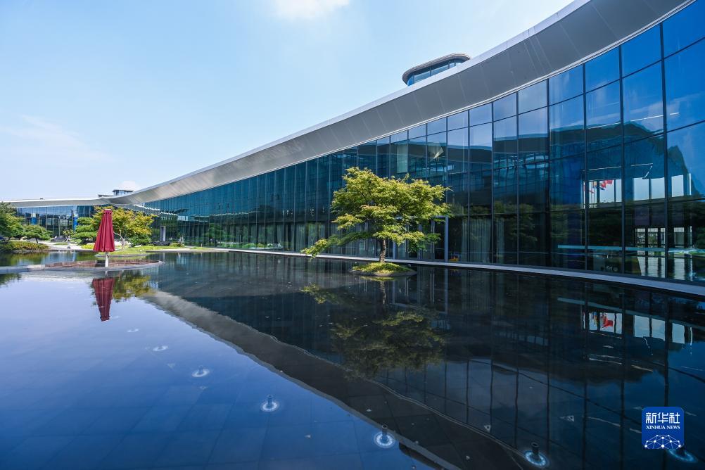 這是8月24日拍攝的杭州富陽水上運動中心的中庭花園,水池中的水來自于循環利用的雨水。新華社記者 徐昱 攝
