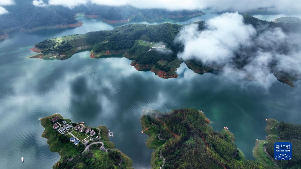 8月25日拍攝的貴州省黔西南布依族苗族自治州興義市萬峰湖景區風光(無人機照片)。新華社記者 楊楹 攝