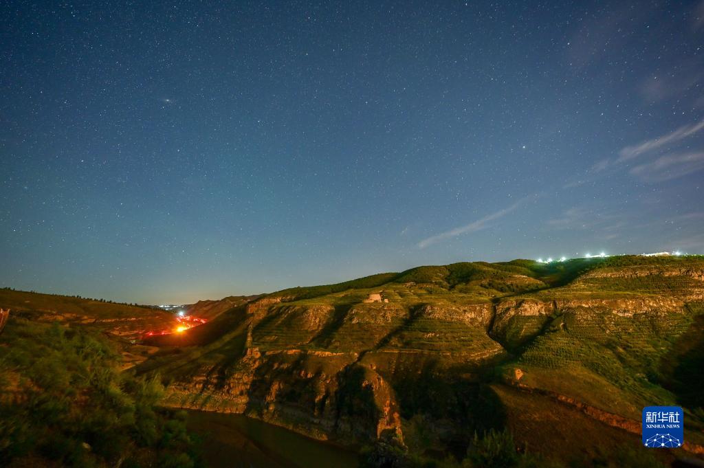 黃河老牛灣位于內蒙古自治區和山西省交界處。夜空下,峽谷兩岸壁立千仞,黃河奔流不息,明長城依山而行,風光壯美。