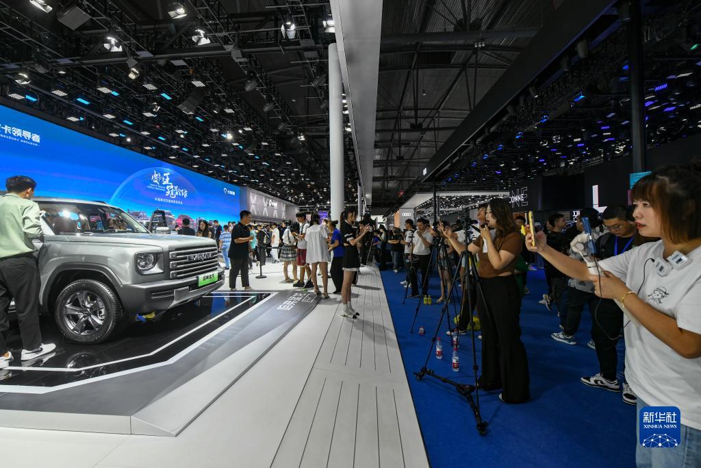 8月25日,在第二十六屆成都國際汽車展覽會,參觀者在進行直播。