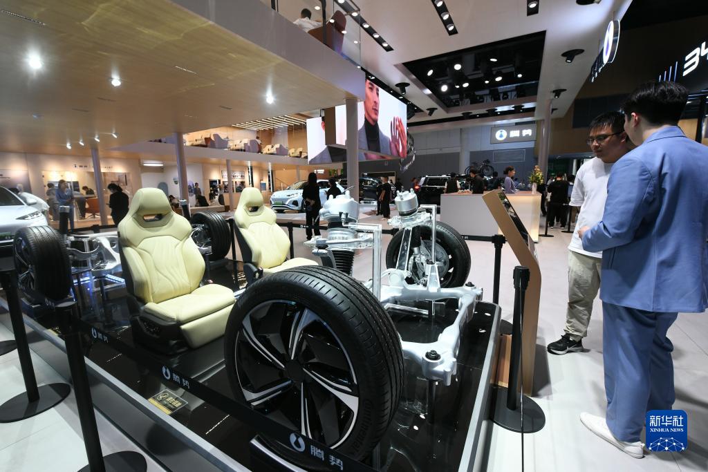 8月25日,在第二十六屆成都國際汽車展覽會騰勢汽車展臺,參觀者在了解云輦A智能空氣車身控制系統。