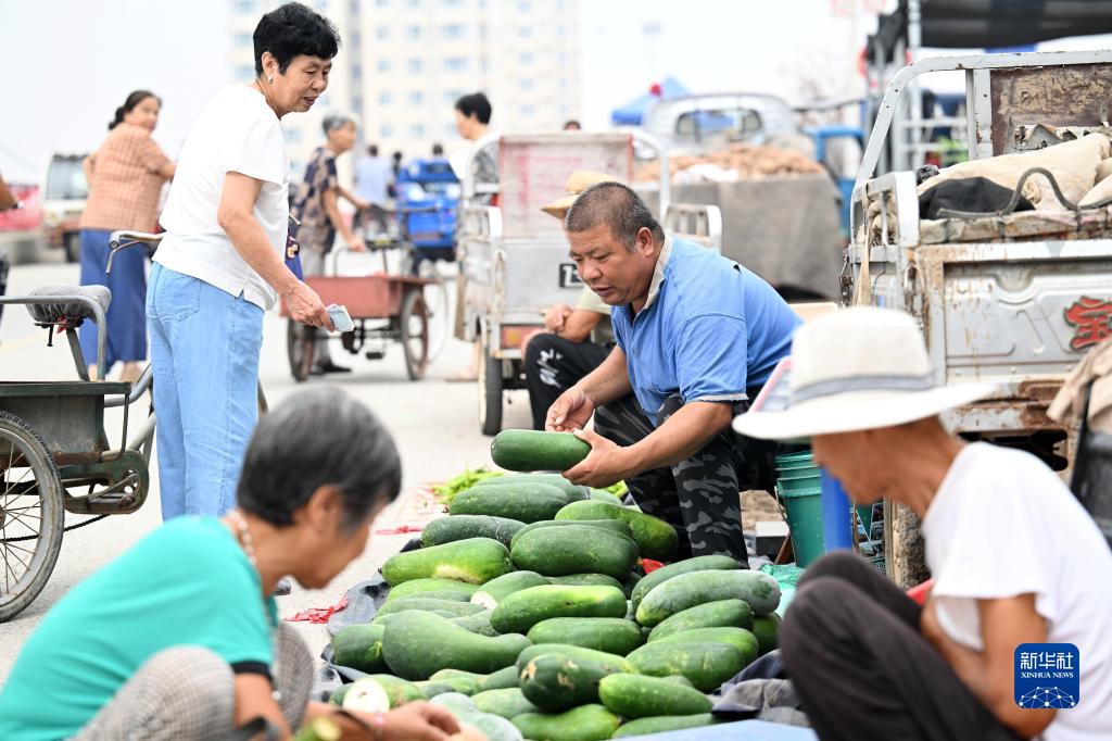 8月25日,前來趕集的村民在大集上挑選蔬菜。