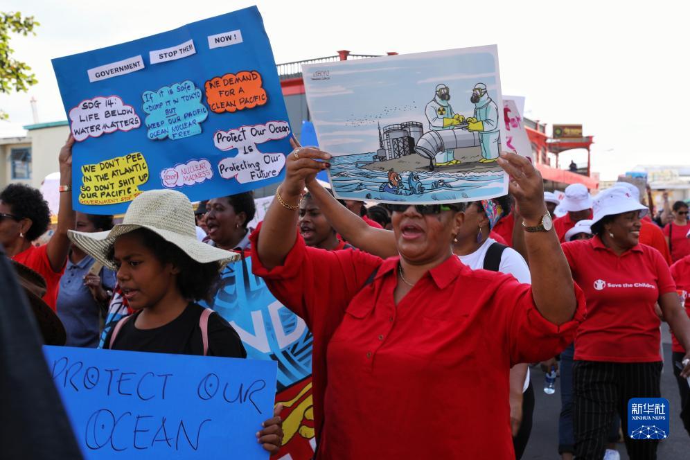 當日,數百名斐濟民眾沿街游行,強烈抗議日本政府啟動福島第一核電站核污染水排海,呼吁國際社會采取行動保護太平洋生態和子孫后代的福祉。