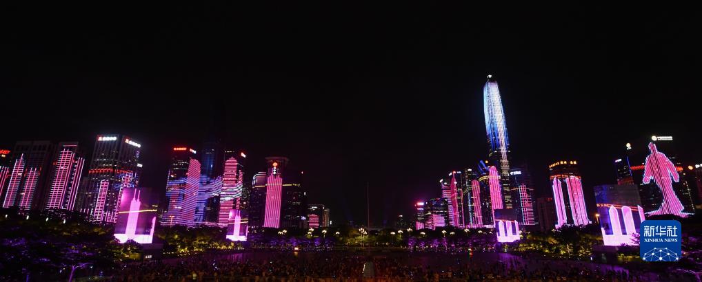 8月25日晚,深圳市中心區燈光表演慶祝特區成立43周年。新華社記者 梁旭 攝