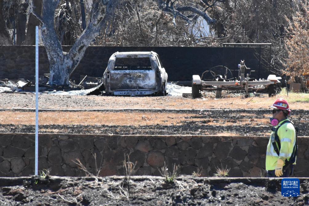 8月22日,工作人員在美國夏威夷州拉海納鎮進行修復工作。