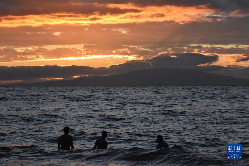 8月21日,人們在美國夏威夷毛伊島的海邊觀看日落。