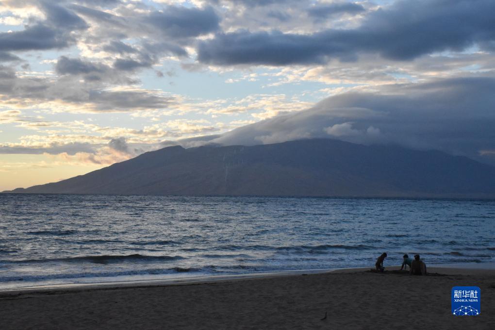 8月21日,游客坐在美國夏威夷毛伊島的海灘上。