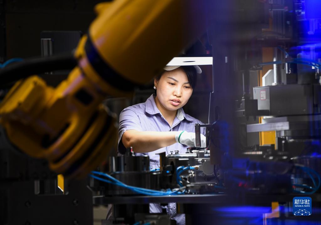 8月24日,工人在西部(重慶)科學城金康動力電機定轉子生產車間作業。
