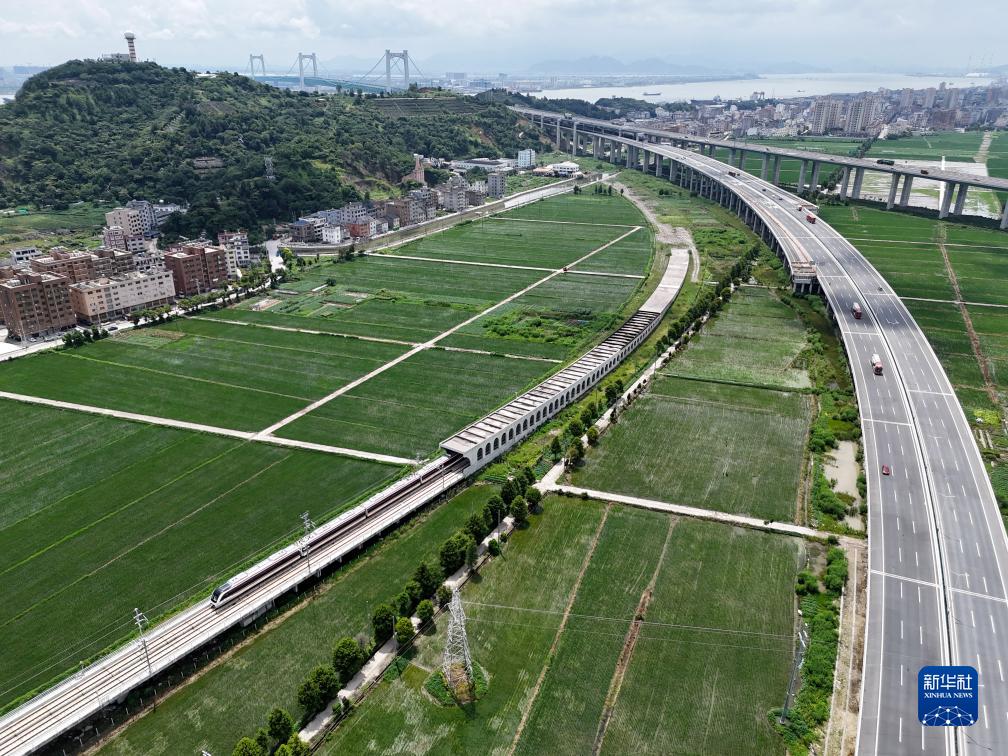 8月26日拍攝的溫州軌道交通S2線列車(無人機照片)。
