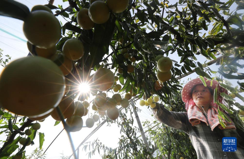8月26日,在湖南省衡陽市衡山縣永和鄉冬棗種植基地,當地村民在采摘冬棗。