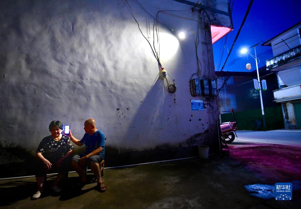 8月17日晚,鄭其輝在家門口用手機為妻子播放音樂。