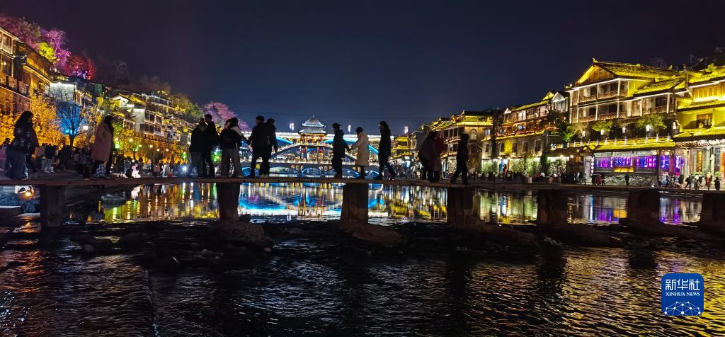 湖南省湘西土家族苗族自治州鳳凰古城持續推進旅游環境提質升級,規范旅游市場,完善旅游服務設施。每到夜晚,鳳凰古城沱江兩岸燈光璀璨,美景如畫,吸引眾多游客前來感受“夜鳳凰”的獨特魅力。