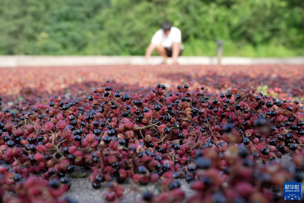 8月26日,秦皇島市海港區石門寨鎮南峪村的一位農民在晾曬收獲的花椒。
