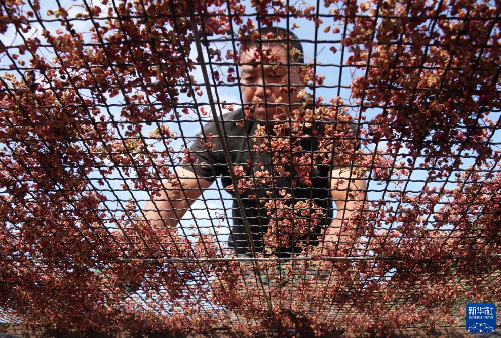 8月26日,秦皇島市海港區石門寨鎮南峪村的一位農民在篩選晾曬好的花椒。