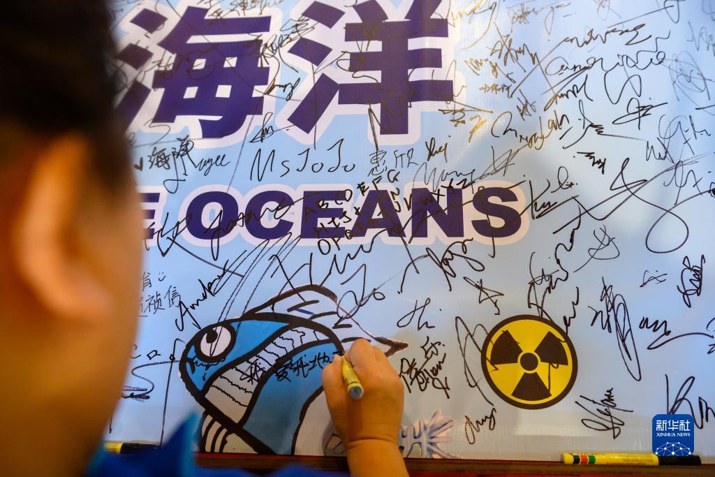 8月27日,在馬來西亞雪蘭莪州士毛月,人們在集會上簽字,反對日本核污染水排海。