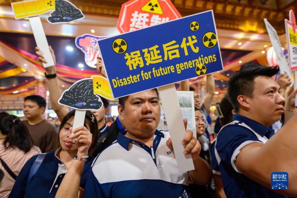 8月27日,在馬來西亞雪蘭莪州士毛月,人們參加反對日本核污染水排海的集會。