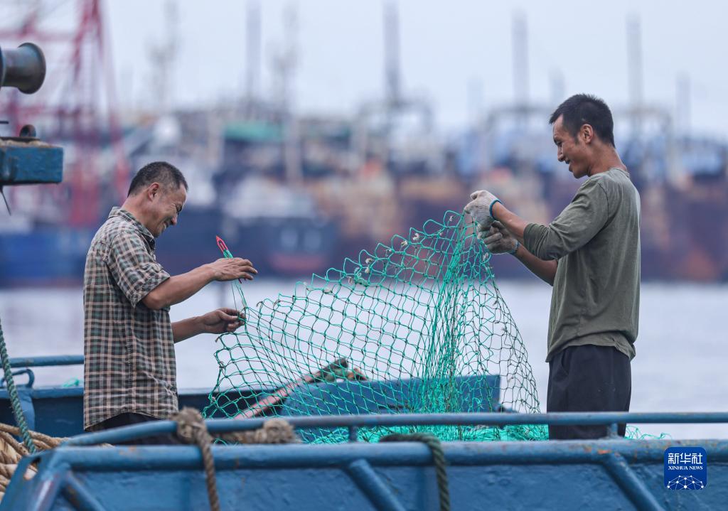 連日來,在山東省榮成市石島漁港碼頭,漁民們忙著檢修漁船、修補漁網、添置各種漁具、加油加冰,為開海秋捕做準備。