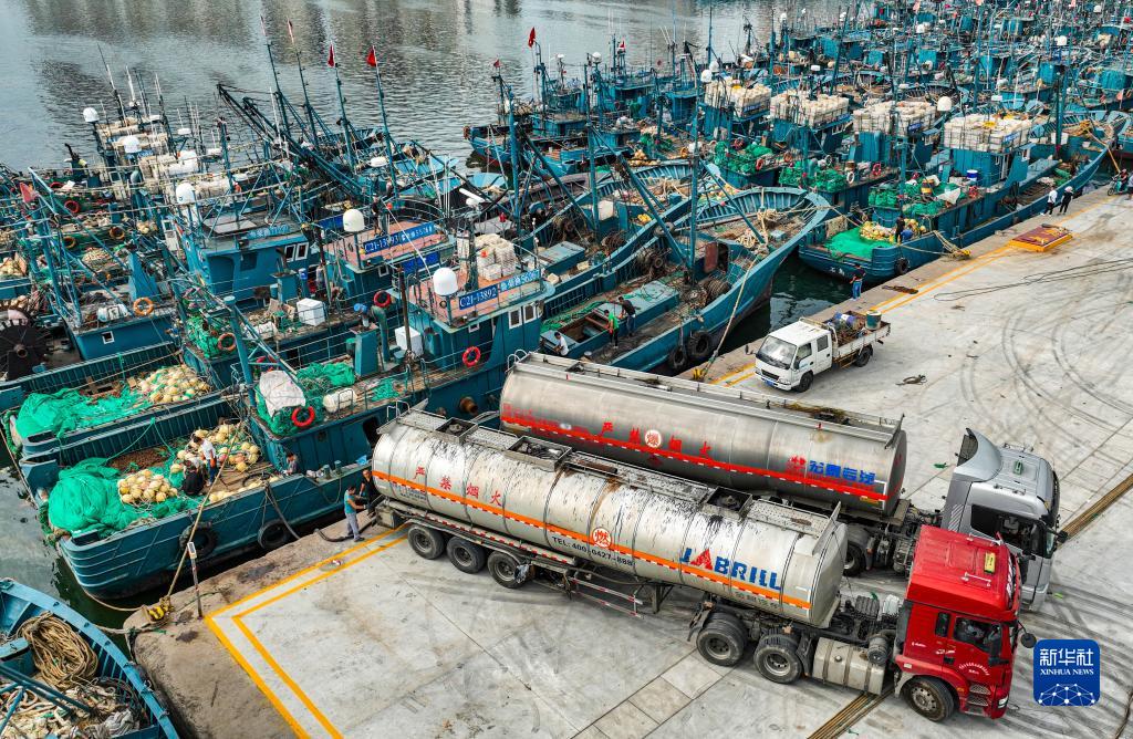 連日來,在山東省榮成市石島漁港碼頭,漁民們忙著檢修漁船、修補漁網、添置各種漁具、加油加冰,為開海秋捕做準備。