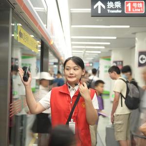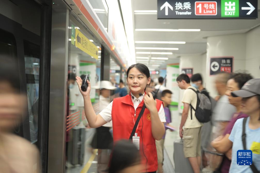 8月27日,工作人員在福州東街口站1號線與4號環線換乘處值班。