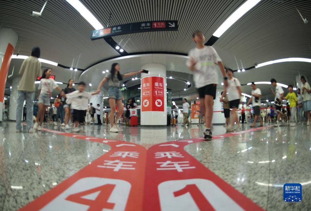 8月27日,乘客在福州地鐵東街口站進行1號線和4號環線換乘。