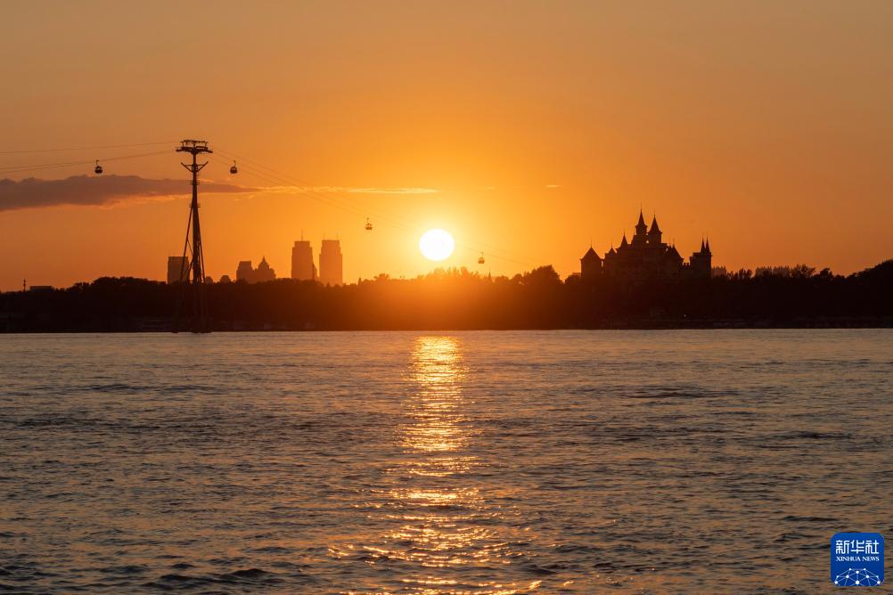 松花江哈爾濱段落日景觀(8月27日攝)。