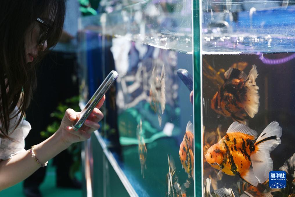 8月28日,觀眾在觀賞金魚。
