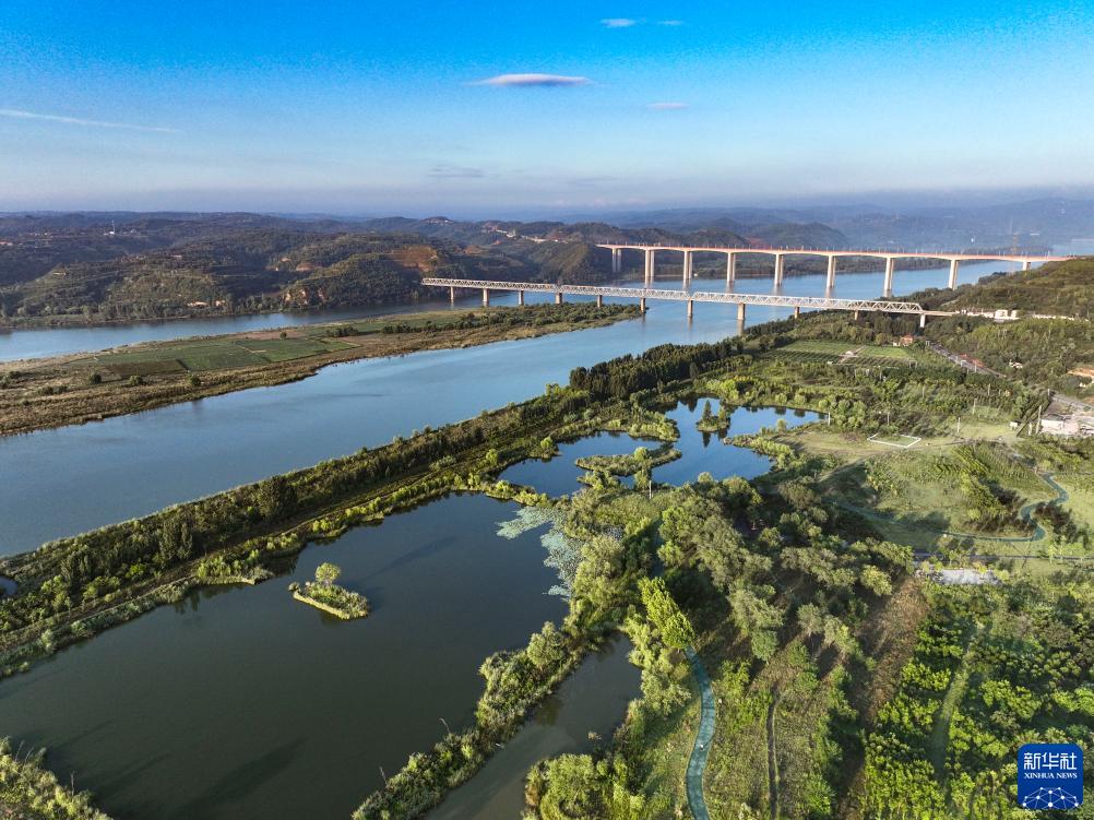 初秋時節,河南黃河濕地國家級自然保護區濟源段河水清清,草木蔥蘢,構成一幅美麗的生態畫卷。
