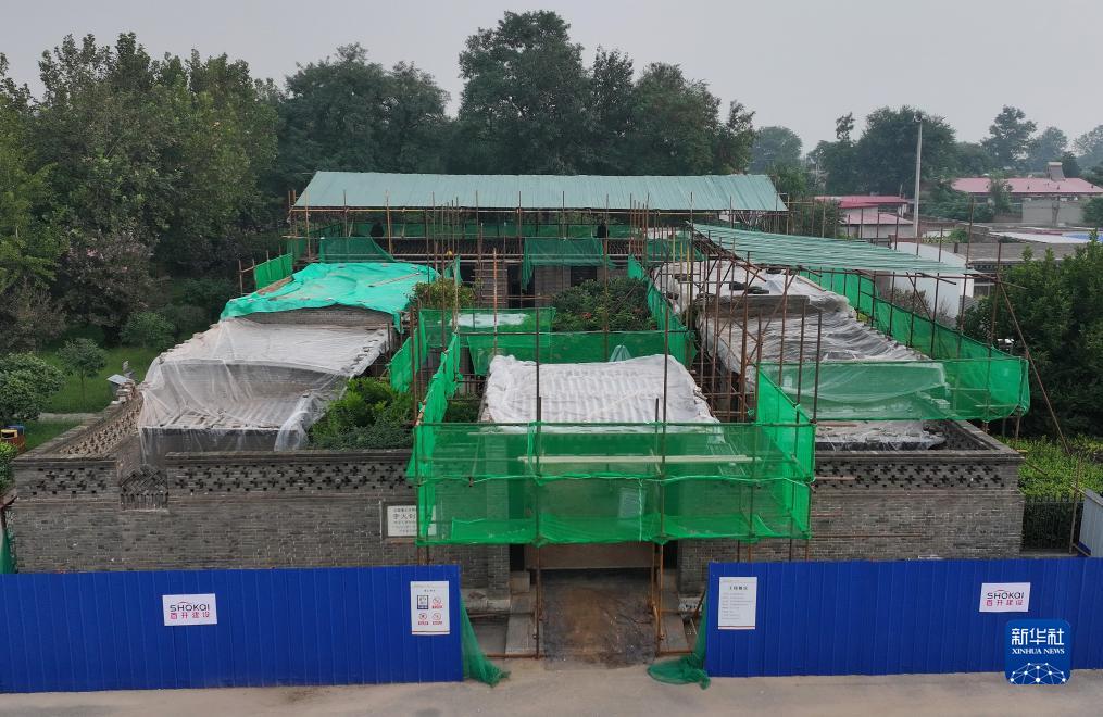8月29日拍攝的維修中的李大釗故居(無人機照片)。