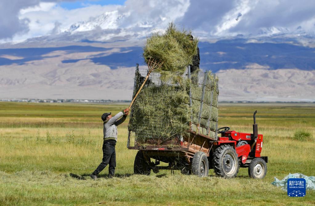 每年八九月是新疆牧區的打草季。眼下,地處帕米爾高原東麓的塔什庫爾干塔吉克自治縣境內,各草場的牧民已紛紛開始收割牧草,忙著儲備牲畜越冬的草料。