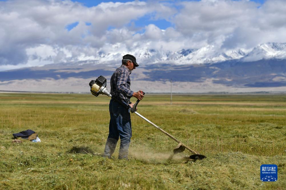 每年八九月是新疆牧區的打草季。眼下,地處帕米爾高原東麓的塔什庫爾干塔吉克自治縣境內,各草場的牧民已紛紛開始收割牧草,忙著儲備牲畜越冬的草料。