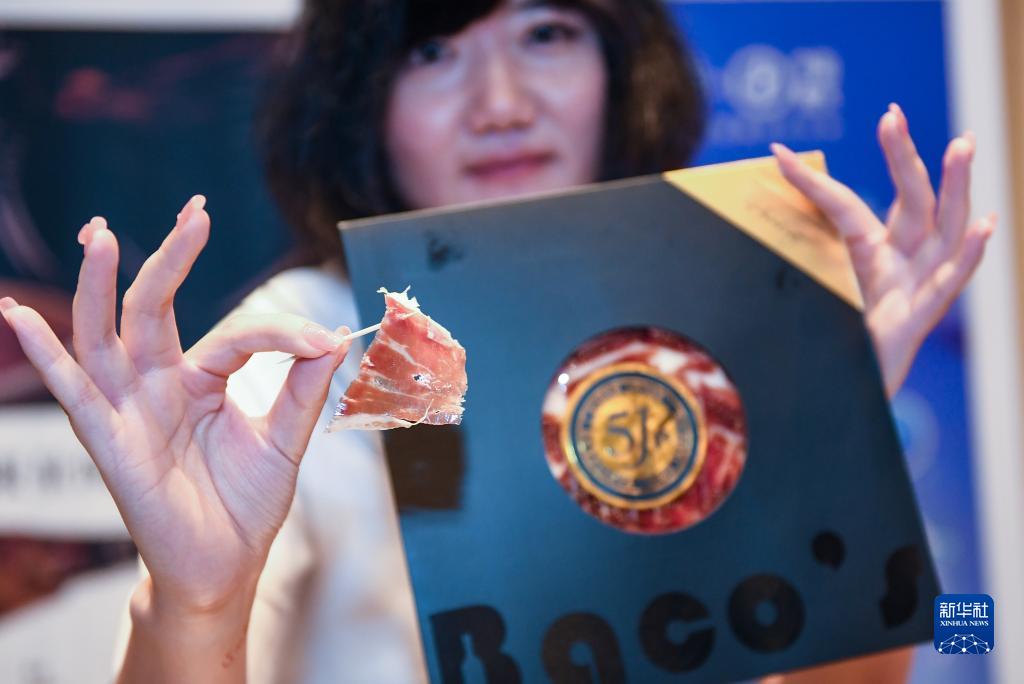 8月29日,在深圳舉行的進博會展前供需對接活動上,參展商展示伊比利亞火腿。