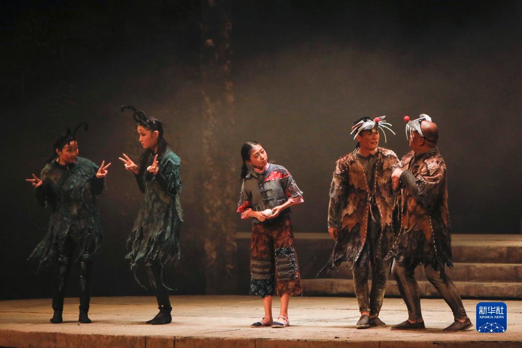 8月29日晚,演員在蘭州音樂廳表演新版紅色兒童劇《大豆謠》。