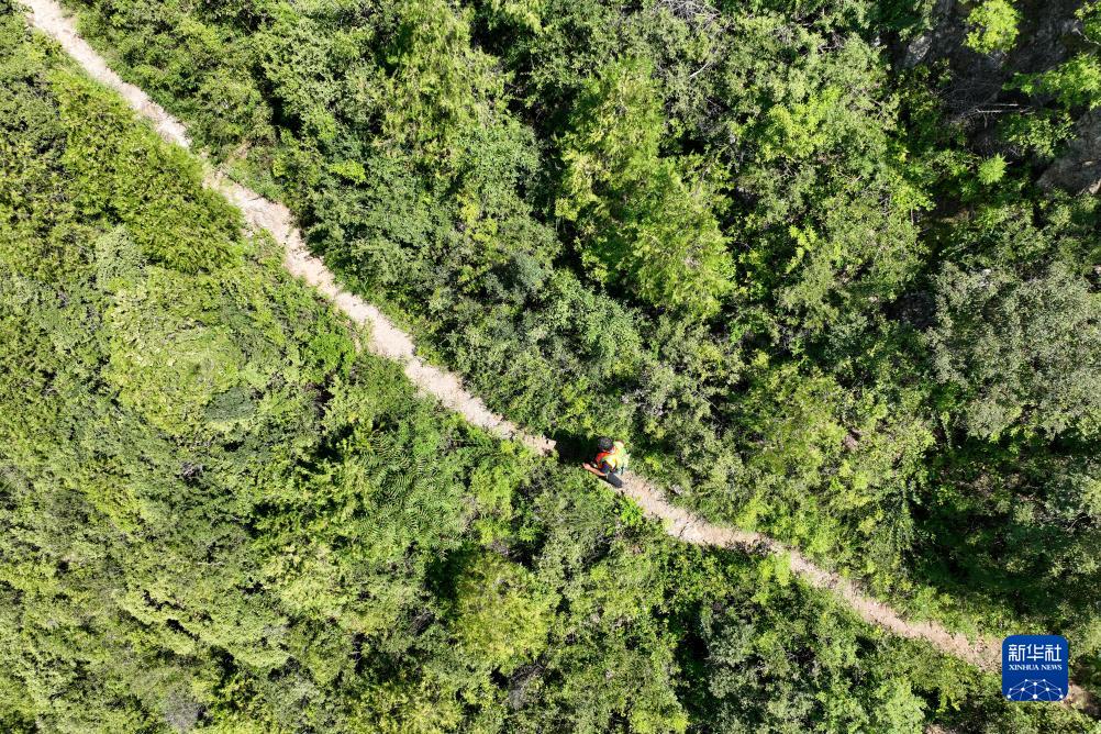 俞海文在巡查長城途中(8月29日攝,無人機照片)。