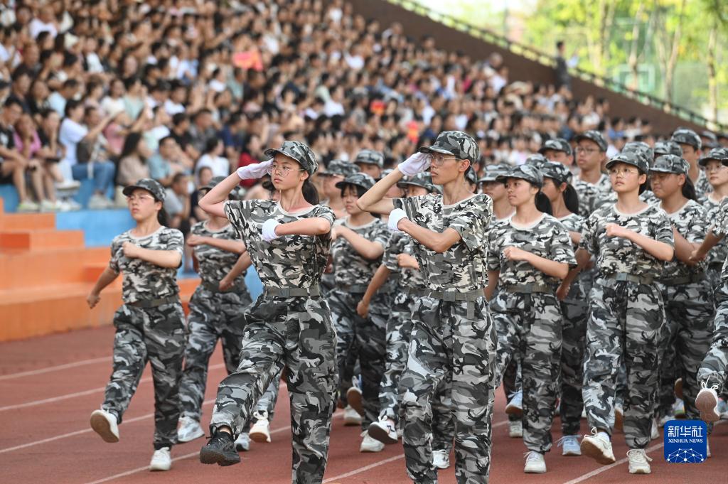 8月30日,四川省內江市第六中學新生在參加隊列會操。