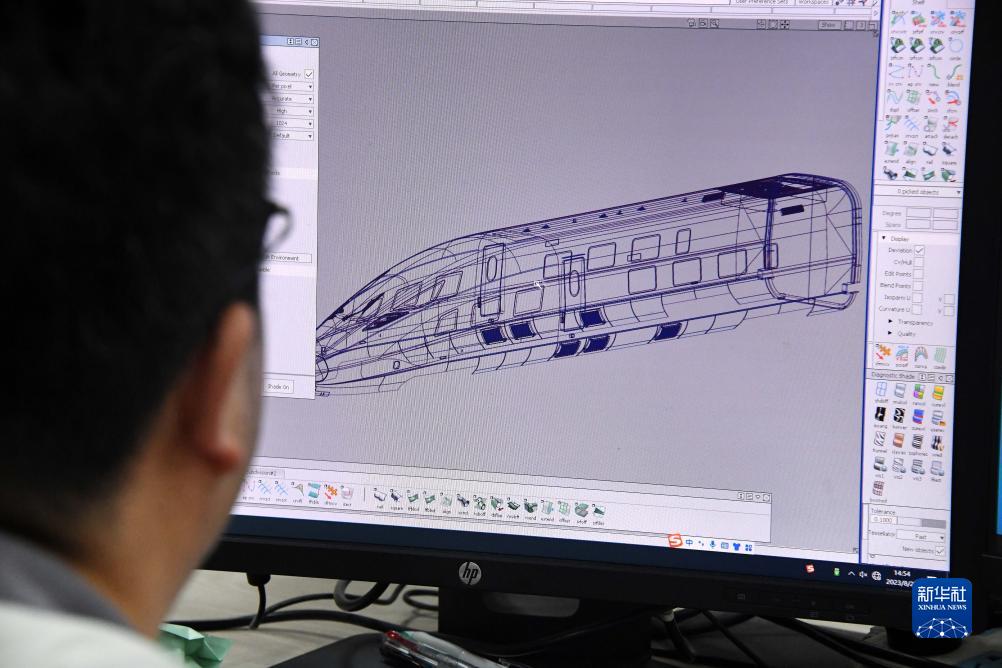 8月29日,中車青島四方設計部門工作人員在進行車輛框架設計。