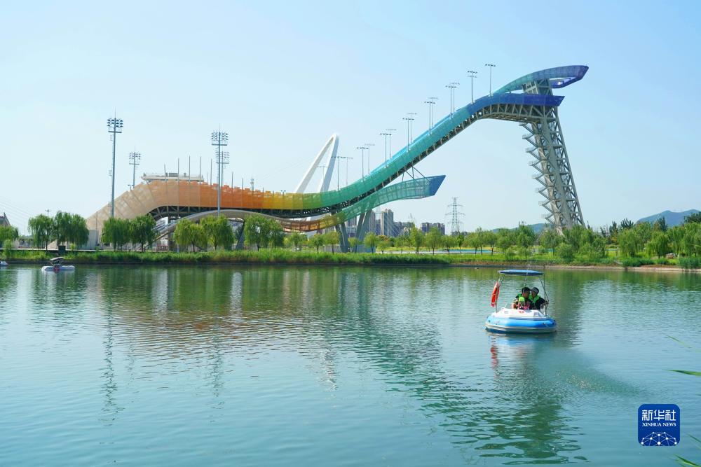 這是8月23日在位于北京市石景山區的首鋼園拍攝的首鋼滑雪大跳臺。