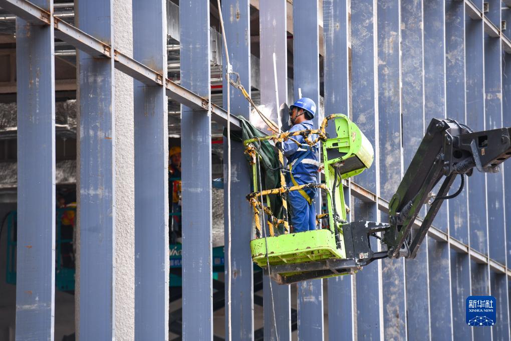 8月30日,在河套深港科技創新合作區首批重點項目河套壹號(原名:深港科創綜合服務中心)建設現場,中建深裝的工人進行幕墻鋼龍骨焊接作業。