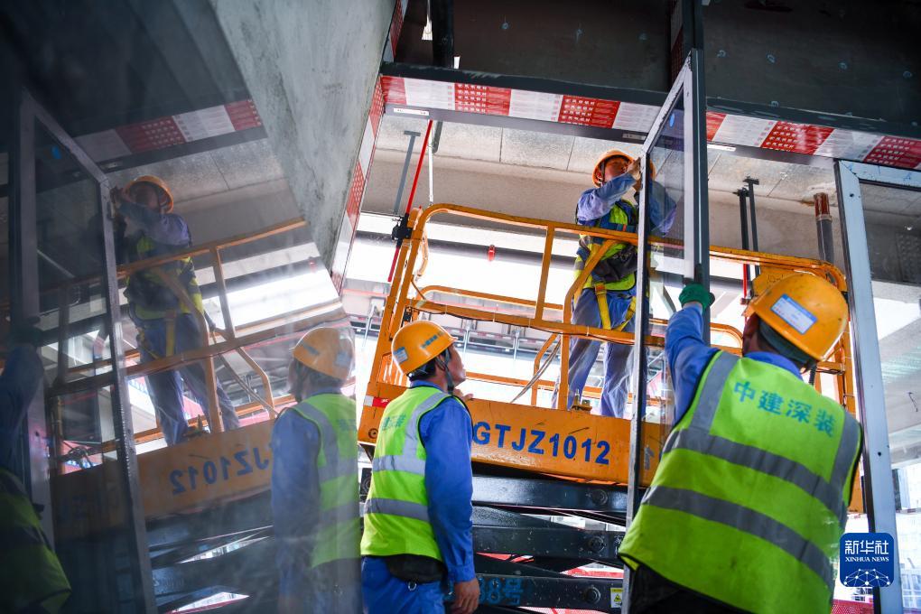 8月30日,在河套深港科技創新合作區首批重點項目河套壹號(原名:深港科創綜合服務中心)建設現場,中建深裝的工人進行門窗安裝作業。