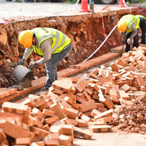 8月30日,在湖南省岳陽市平江縣金盾小區,工人在砌墻。