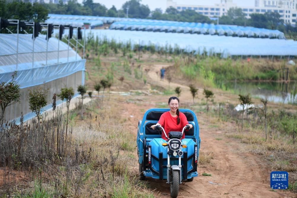 8月30日,潘雅潔在肥西縣紫蓬鎮的鄉村田園綜合體內駕駛農用車運送農資。