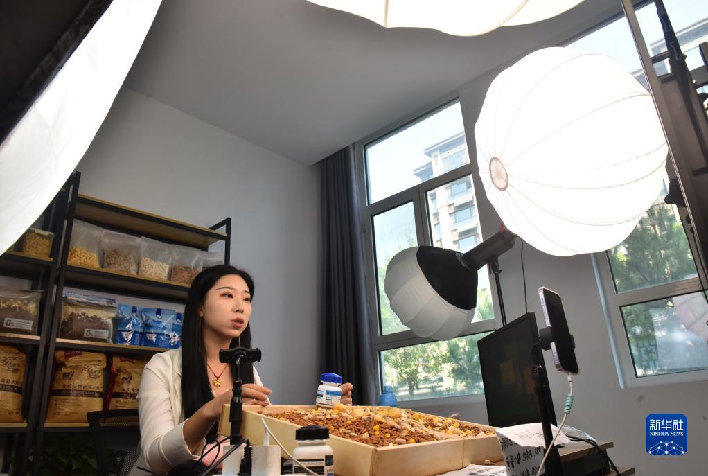 8月30日,河北省邢臺市南和區和陽鎮一家寵物用品生產企業工作人員通過網絡直播銷售產品。