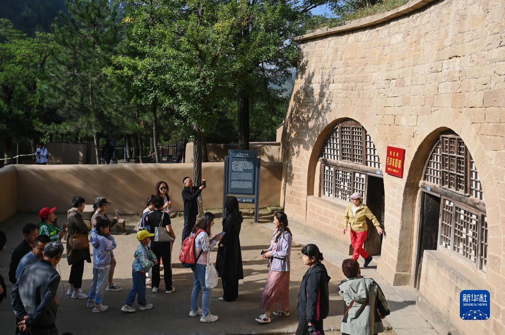 8月29日,在陜西延安,游客參觀楊家嶺革命舊址內的毛澤東舊居。