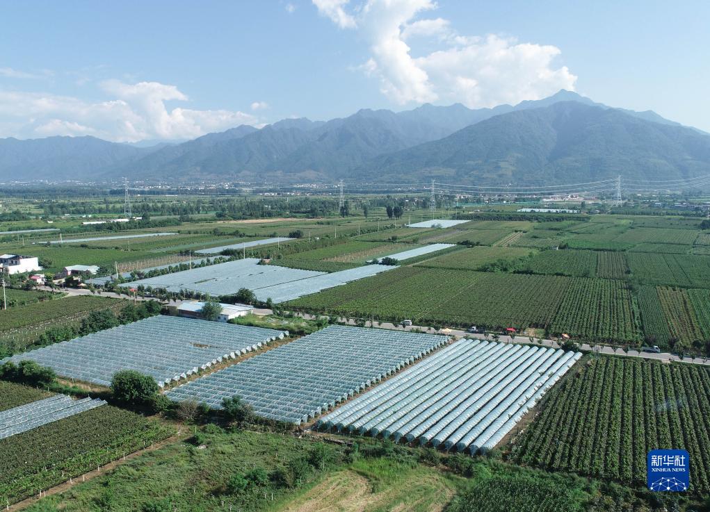 位于西安市鄠邑區玉蟬街道的葡萄種植大棚(8月30日攝,無人機照片)。