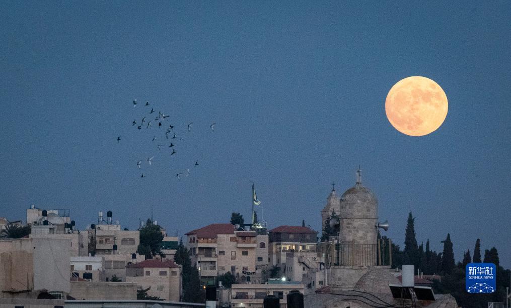 這是8月30日在耶路撒冷拍攝的“超級月亮”。