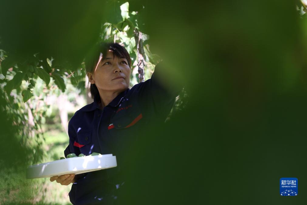 8月30日,河北省唐山市遷西縣鐵門關村村民在采收軟棗獼猴桃。