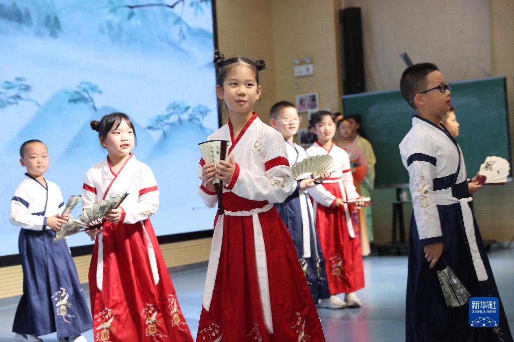 8月31日,福建省廈門市檳榔小學學生在新學期開學式上誦讀古詩。
