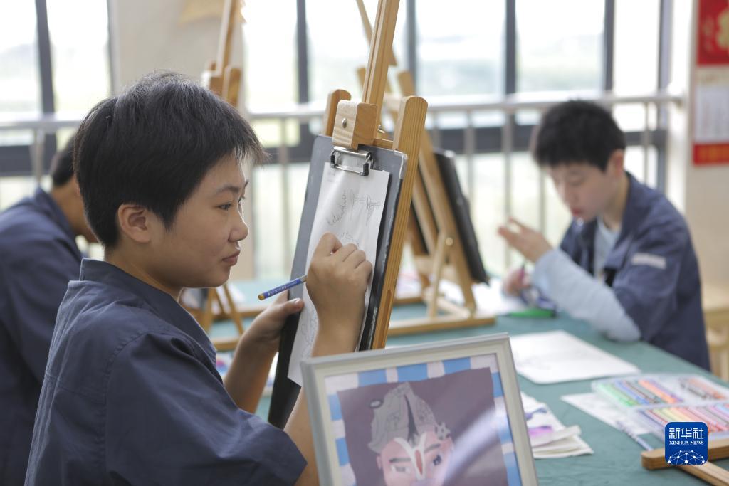 8月30日,在鹽城市殘疾人托養中心作訓室,學員進行繪畫訓練。