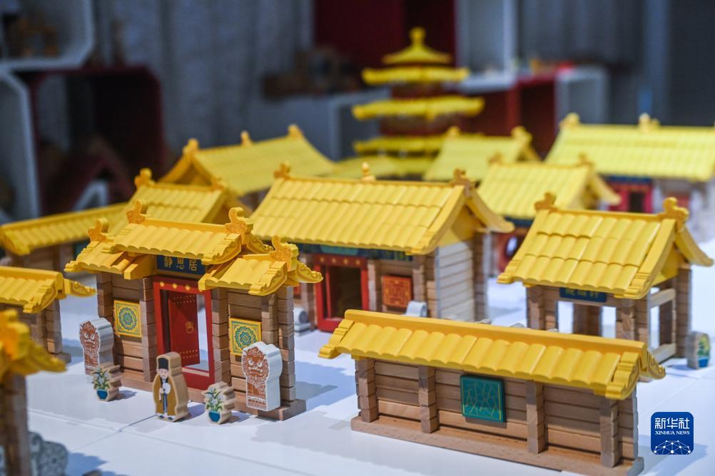 8月31日,位于云和縣的浙江和信玩具集團有限公司展廳內展示著國潮榫卯積木玩具。